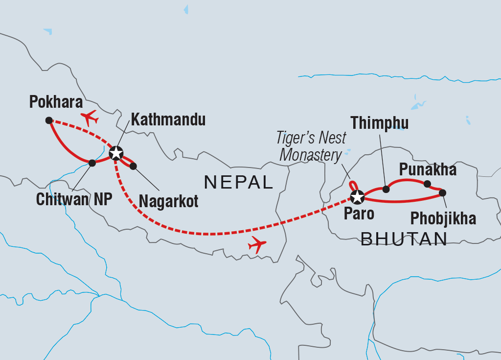 Hotels (12 nights) – Nepal 3 nights & Bhutan 4 nights, India 5 nights.